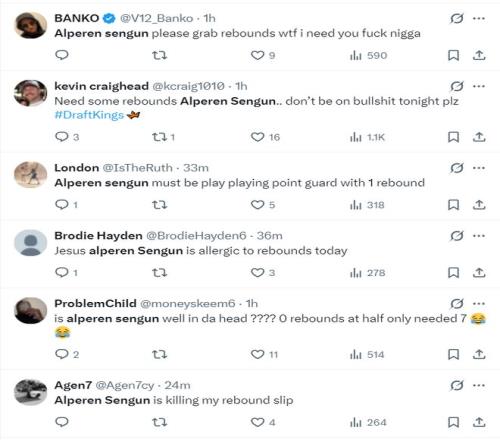 質疑NBA的球迷也有:1.NBA這是被操縱了嗎?一個中鋒打了半場沒有籃板球?