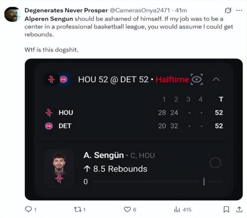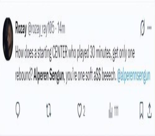 北京時間1月24日,火箭以111-104復仇活塞。這場比賽火箭隊的先發(fā)中鋒阿爾佩倫-申京延續(xù)了他對陣費城的低迷狀態(tài),此役他的拉胯更盛,火箭球迷們對他已經(jīng)忍無可忍在社媒上各種炮轟,全都是因為申京作為一名6尺11(2.11米)的中鋒只有1個籃板。
