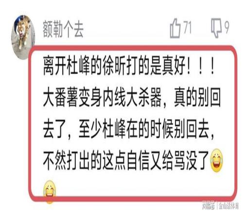 徐昕再次爆發(fā),網(wǎng)友們也紛紛點(diǎn)贊?!靶礻楷F(xiàn)在新外號(hào)叫廣州塔,罰球的時(shí)候被球迷喊MVP,這不好起來了嗎!”;“上賽季一直說徐昕體能不好,現(xiàn)在都打30多分鐘了,隊(duì)里上場第一”;“事實(shí)證明,杜峰那一套過時(shí)了”;“離開杜峰的徐昕打的是真好?。?!大番薯變身內(nèi)線大殺器,真的別回去了,至少杜峰在的時(shí)候別回去,不然打出的這點(diǎn)自信又給罵沒了?!?;“又爆發(fā)了,你說我不行,我偏要做給你看,話說徐昕這孩子,是真爭氣啊!”……