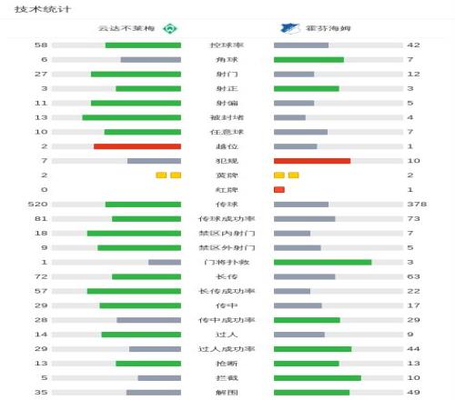 第52分鐘,霍芬海姆球隊(duì)布格爾吃到紅牌。