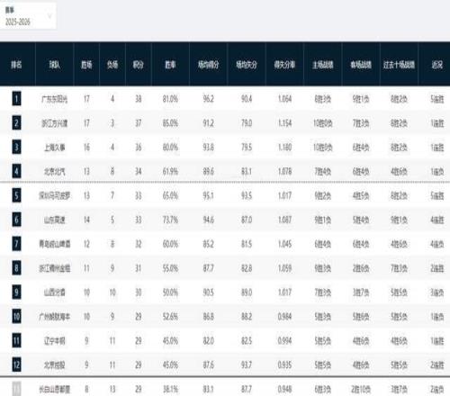 CBA積分榜最新排名!廣東反超廣廈殺回第一,北京慘敗被打回原形