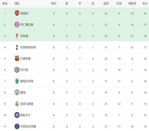 阿森納是歐冠唯一小組賽8場(chǎng)全勝的球隊(duì),鎖定第1晉級(jí)16強(qiáng)。阿森納是歐冠36隊(duì)賽制以來首支聯(lián)賽階段全勝的球隊(duì)。阿爾特塔真是神了。 毫無疑問,阿森納就是奪冠最大熱門,進(jìn)攻和防守都做得非常出色。英超球隊(duì)在這次歐冠小組賽表現(xiàn)都很出色,有5支球隊(duì)直接晉級(jí)淘汰賽,除了阿森納之外,利物浦、熱刺、切爾西和曼城都直接晉級(jí)16強(qiáng)。