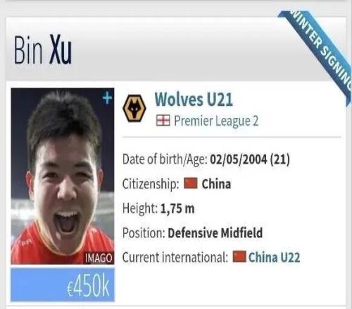 此前在U23亞洲杯表現(xiàn)出色的U23國(guó)足隊(duì)長(zhǎng)徐彬,以自由轉(zhuǎn)會(huì)的方式加盟了狼隊(duì)U21。徐彬現(xiàn)年21歲,司職后腰,2022年在廣州隊(duì)完成中超首秀,2025年1月徐彬自由身加盟青島西海岸。