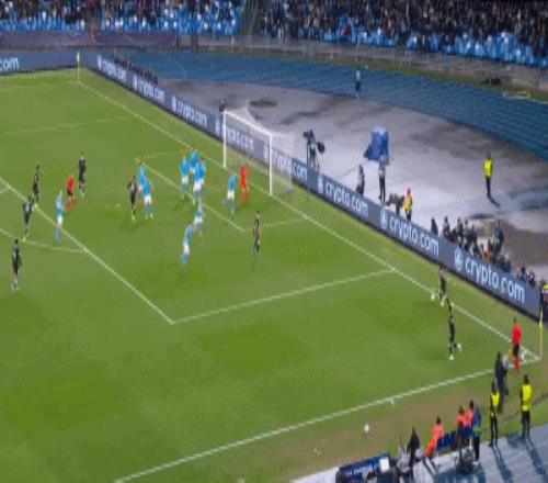 第43分鐘,逆轉(zhuǎn)比分,霍伊倫門前搶點破門,切爾西1-2那不勒斯