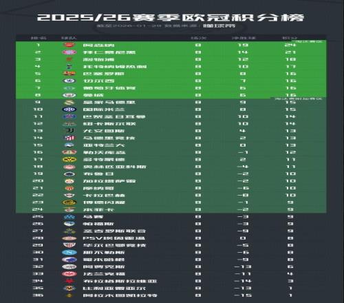 九支第4檔球隊中,紐卡成績最佳排名第12位,加拉塔薩雷、摩納哥、卡拉巴赫分列第20到22位。