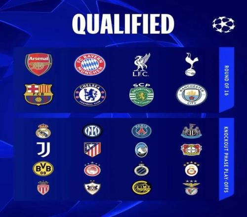 直接晉級16強(qiáng)的八支球隊(duì)是:阿森納、拜仁慕尼黑、利物浦、托特納姆熱刺、巴塞羅那、切爾西、葡萄牙體育和曼城。阿森納以令人信服的八戰(zhàn)全勝戰(zhàn)績強(qiáng)勢領(lǐng)跑。