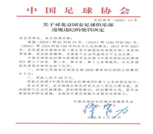 被扣5分+罰40萬!國(guó)安官微硬剛足協(xié):人在做天在看,球迷支持上訴