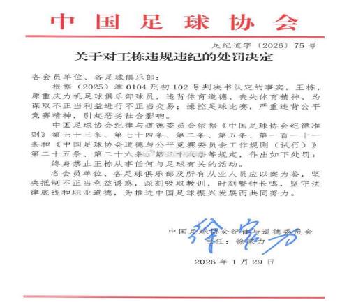 周四,中國(guó)足協(xié)正式公布受處罰俱樂(lè)部名單。天津津門虎被罰10分,王棟、鄧小飛則遭到終身禁足。