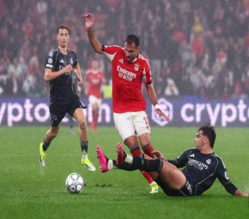 重回故地的卡雷拉斯在上半場便處境艱難,本菲卡的首粒進球正是源于他多次漏人中的一次;赫伊森再次暴露出對抗偏軟、強度不足的問題;而阿森西奧——盡管他曾為姆巴佩送出精彩助攻首開紀錄——隨后卻失誤連連:一次魯莽上搶加滑倒直接導致1-1的失球,被謝爾德魯普輕松過人造就了3-1的比分,最終兩黃變一紅被罰離場。