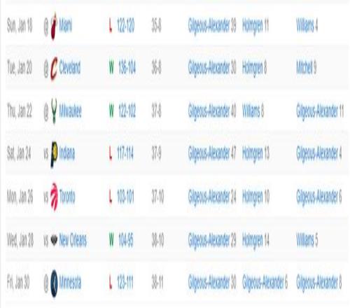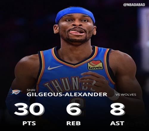 落后16分末節(jié)僅打2分鐘SGA轟30+8+6背鍋雷霆近7戰(zhàn)4負難比去年