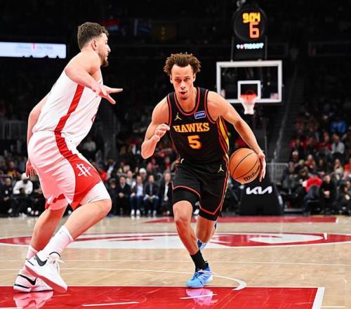 本場比賽中,老鷹的先發(fā)得分后衛(wèi)戴森-丹尼爾斯(Dyson Daniels)的表現(xiàn)令人大跌眼鏡。丹尼爾斯全場出場31分29秒,投籃12中2,三分線外3中0,得到了4分6籃板7助攻3搶斷的數(shù)據(jù),其中還包括了4個前場籃板,還有1次失誤和2次犯規(guī),正負值為+2。一方面,丹尼爾斯在防守端的表現(xiàn)絕對是值得肯定的,他也展現(xiàn)出了自己應有的個人防守能力并且起到了相當不錯的效果。不僅如此,丹尼爾斯在籃板爭搶方面的表現(xiàn)也是值得肯定的,而且他在傳球和組織方面也是起到了一定的作用的。然而另一方面,丹尼爾斯的進攻效率實在是太糟糕了,他的突破能力完全沒有發(fā)揮出來,他在外線投籃方面的穩(wěn)定性更是慘不忍睹。