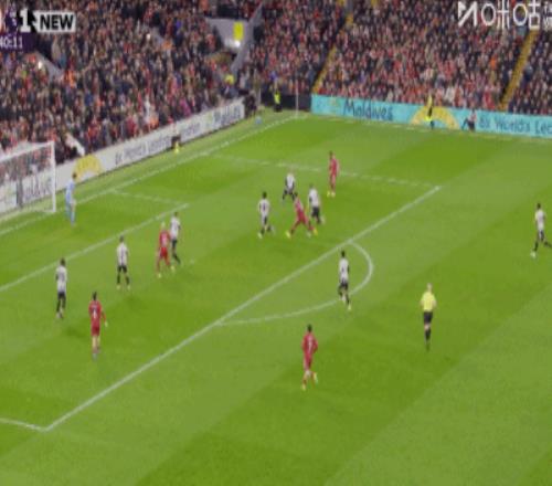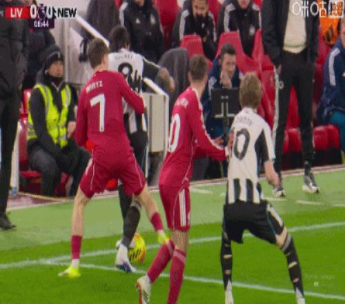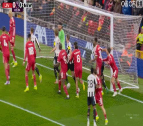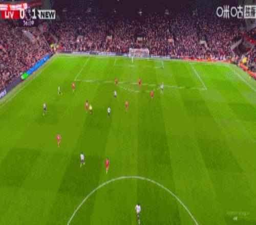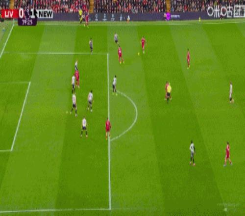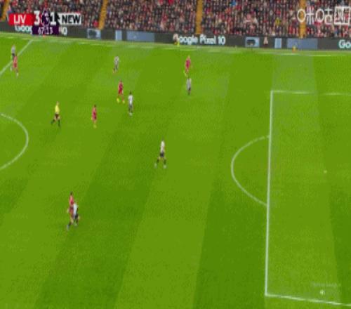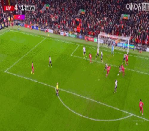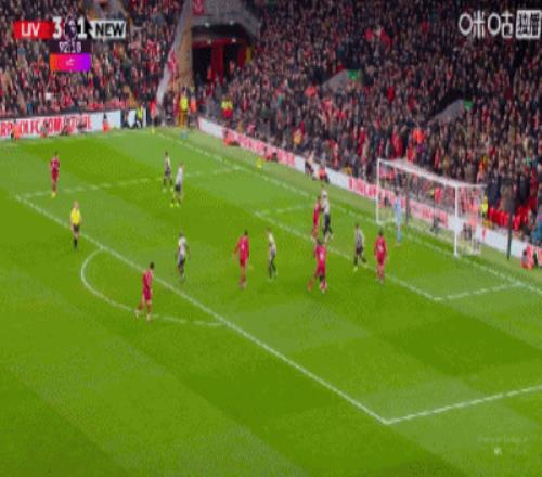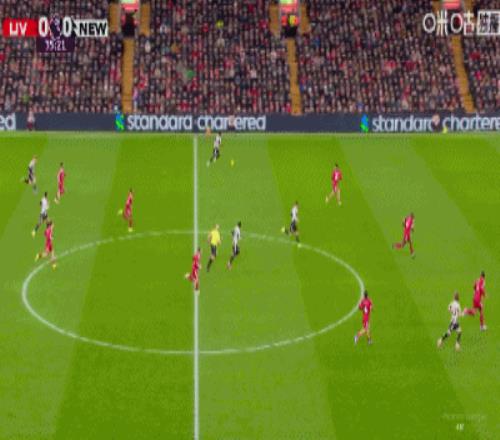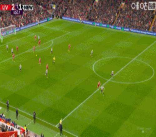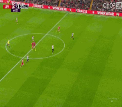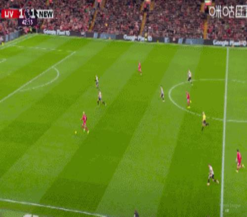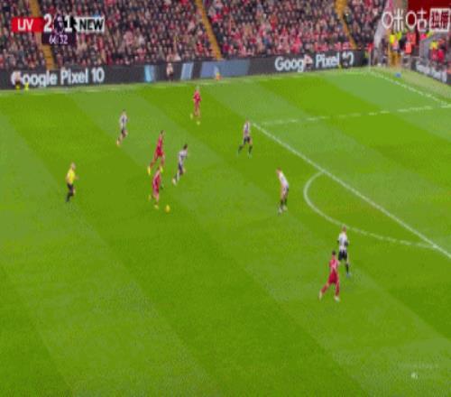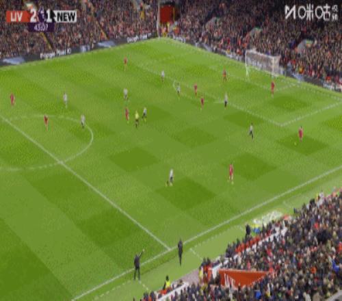 第43分鐘,三分鐘兩球,?;倏说蜕溥h(yuǎn)角梅開二度,利物浦2-1紐卡