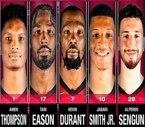 火箭隊(duì):杜蘭特、史密斯、申京、伊森、阿門!