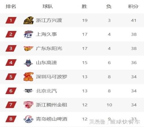 積分榜第7名的是浙江隊(duì),這一輪比賽他們輸給了廣廈,戰(zhàn)績(jī)變成12勝10負(fù)。而第8名則是青島隊(duì),戰(zhàn)績(jī)?yōu)?2勝9負(fù),他們最近正遭遇一波5連敗,球隊(duì)排名也呈現(xiàn)直線下滑。排在第9名的是山西隊(duì),這一輪比賽,他們?cè)诳蛨?chǎng)以31分的巨大優(yōu)勢(shì)狂勝吉林隊(duì),成功將戰(zhàn)績(jī)提升到11勝11負(fù)。四冠王遼寧隊(duì)則緊隨其后,他們這一輪大勝了天津隊(duì),成功避免兩連敗。球隊(duì)?wèi)?zhàn)績(jī)提升到10勝12負(fù),排在積分榜第10名。
