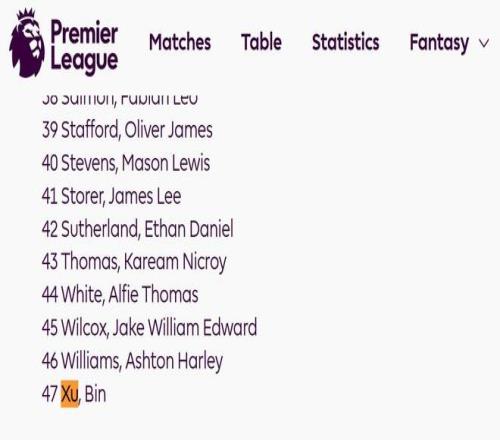 英超官網(wǎng)冬窗更新名單:徐彬出現(xiàn)在狼隊(duì)U21球員陣容里