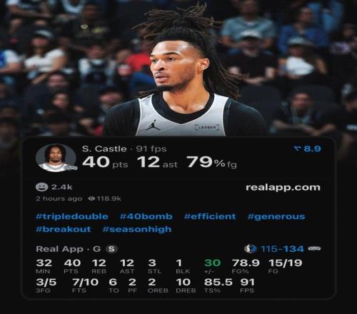 全場(chǎng)卡斯?fàn)柍鰬?zhàn)31分51秒,19中15,三分5中3,爆砍生涯新高的40分,外加12板12助3搶斷1蓋帽超級(jí)大三雙。