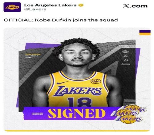 有球迷表示,湖人簽下 科比-巴夫金,大概就是因?yàn)樗拿纸锌票劝伞?/p>
