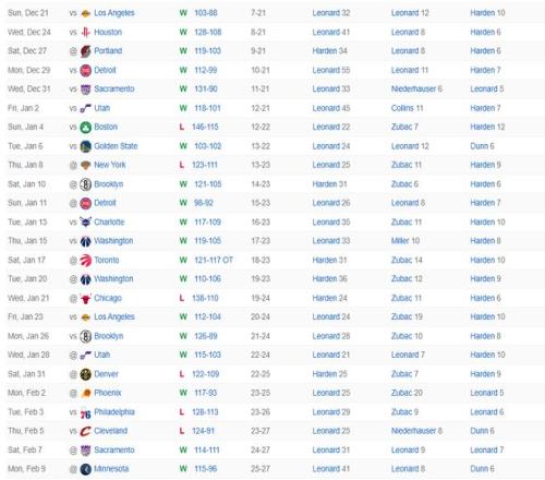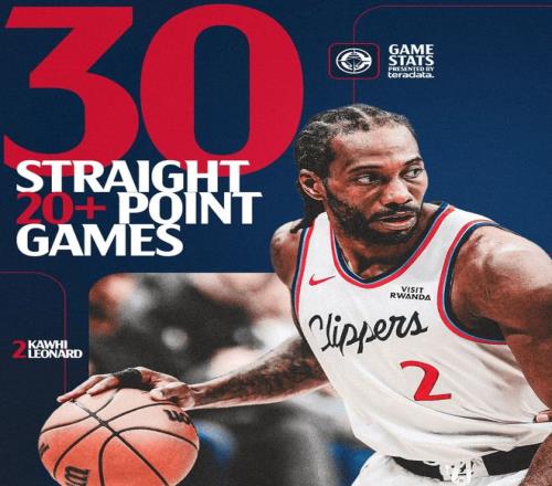 2.小卡連續(xù)30場20+在快船隊史超過格里芬;