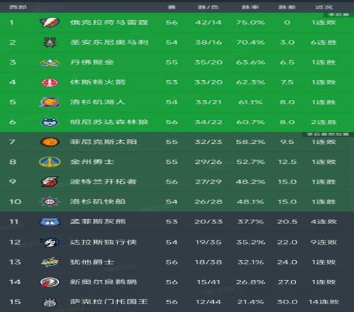 北京時間2月13日,今日的NBA常規(guī)賽結(jié)束了所有比賽,我們看看西部的最新排名!