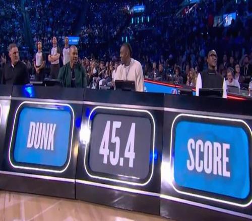 第二位登場(chǎng)的是魔術(shù)新秀杰斯-理查德森,他奉獻(xiàn)一記折疊背扣,得到45.4分。