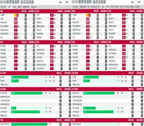 對(duì)陣霍芬海姆的比賽只是迪亞斯極致效率淋漓盡致的一次展現(xiàn):?jiǎn)螆?chǎng)5次射門4次射正,10次過人7次成功,傳球成功率高達(dá)94.7%,而帽子戲法加兩造墊也讓其單場(chǎng)參與進(jìn)球數(shù)追平拜仁隊(duì)史邊鋒紀(jì)錄。而將時(shí)間線拉至整個(gè)2025-26賽季,迪亞斯數(shù)據(jù)升級(jí)后的效率會(huì)更加明顯。