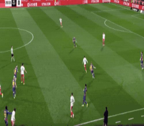 第16分鐘,奧爾莫送出傳球,亞馬爾的停球足夠舒服,快速突破形成單刀,但最后的射門被加扎尼加撲了出來。
