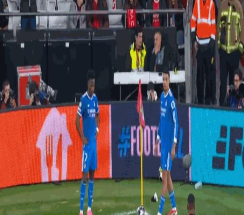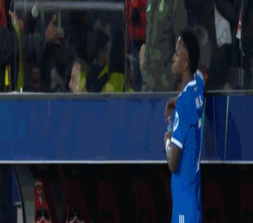 第90+12分鐘,維尼修斯準(zhǔn)備主罰角球,被球迷投擲的物體擊中