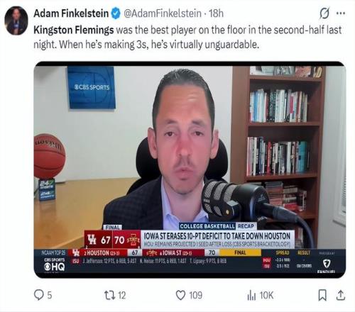 根據(jù)NCAA選秀專家Adam Finkelstein對(duì)弗萊明斯的評(píng)價(jià):對(duì)陣愛(ài)荷華州立比賽就能看出弗萊明斯是場(chǎng)上最出色的那個(gè),當(dāng)他能命中三分球時(shí)幾乎是無(wú)人可擋的。