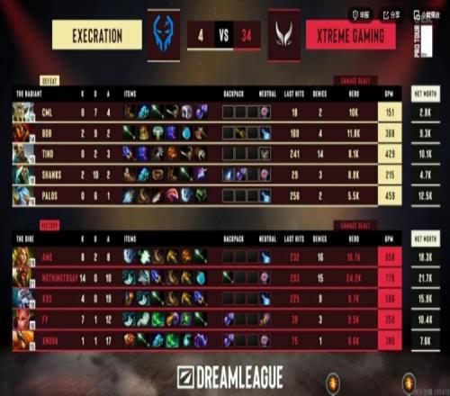 第二局比賽XctN一級團(tuán)五人強(qiáng)殺Ame風(fēng)行者,然而這就是他們本局唯一一次的擊殺領(lǐng)先了!對線期NTS獸王對位單殺Bob火貓,XG下路對線發(fā)力連續(xù)強(qiáng)殺Palos凱,早早拿下經(jīng)濟(jì)優(yōu)勢!12分鐘帶盾的獸王連續(xù)配合隊(duì)友打出節(jié)奏,XG無限掃圖+逼團(tuán)隨便打隨便贏,XctN正面團(tuán)戰(zhàn)一碰就碎被XG輕松拉開經(jīng)濟(jì)差!而XctN在巨大劣勢之下也不投子認(rèn)負(fù),最終在高地團(tuán)被XG團(tuán)滅結(jié)束比賽,XG以34-4的擊殺比碾壓擊敗XctN!