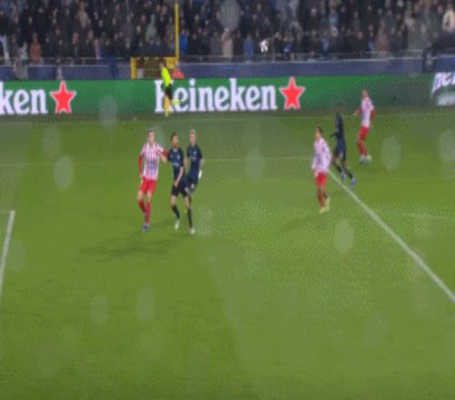 第60分鐘,馬馬杜-賈孔強(qiáng)突傳中,特雷索爾迪搶點(diǎn)破門,布魯日連扳兩城2-2!