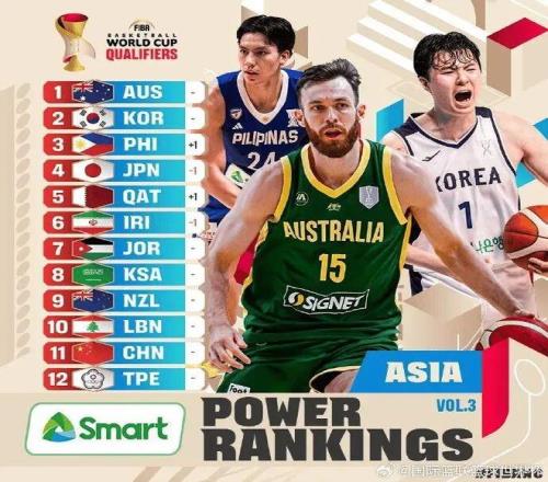 FIBA官方更新世預(yù)賽第二窗口期實(shí)力榜,其中,澳大利亞、韓國(guó)和菲律賓位居前三,中國(guó)男籃位居第11位,中國(guó)男籃即將對(duì)陣的日本排名第四。