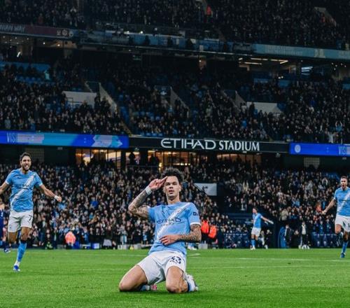 不過2隊(duì)本賽季的前三次交鋒都是曼城獲勝,瓜迪奧拉的球隊(duì)隨即立馬再次取得領(lǐng)先;第27分鐘,塞門約右側(cè)肋部耐心組織后送出精準(zhǔn)直塞,哈蘭德反越位前插下底傳中,后排插上的奧賴?yán)^球完成梅開二度,2:1!20歲的奧賴?yán)@賽季已經(jīng)成長為曼城的絕對主力,無論是左后衛(wèi)還是中場都能勝任,本賽季也已經(jīng)收獲了6球5助攻。第41分鐘,托納利左路定位球旋入禁區(qū),丹-伯恩搶點(diǎn)頭球入網(wǎng)被判越位在先無效。