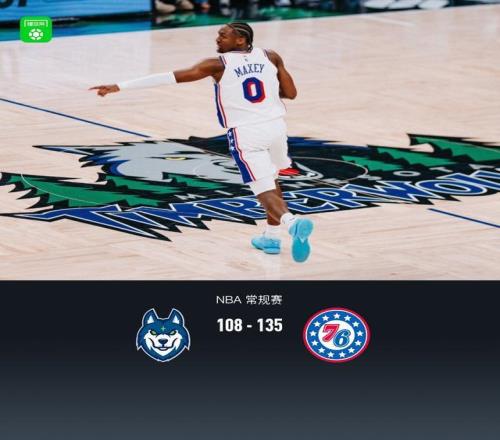76人135108大勝森林狼,馬克西39+3+8,愛德華茲28分7失誤