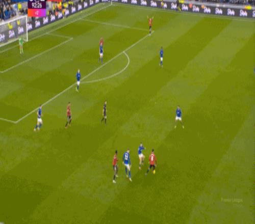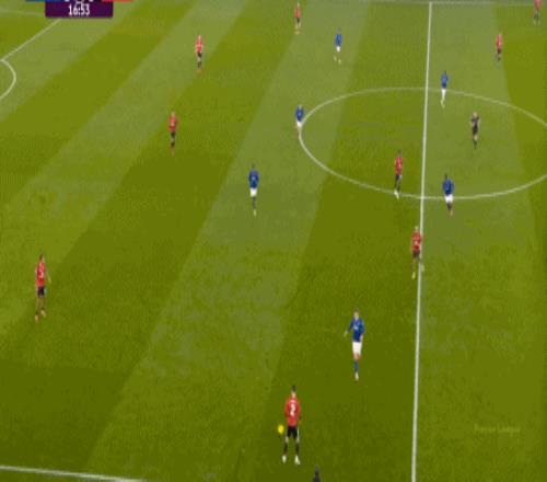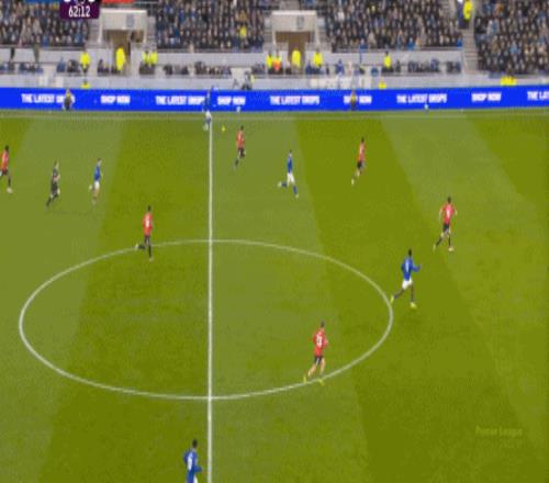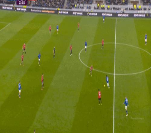 因?yàn)?,?5到70分鐘,埃弗頓幾乎將曼聯(lián)壓在了半場(chǎng)范圍內(nèi),他們用相當(dāng)長(zhǎng)線條的方式來(lái)發(fā)展自己的進(jìn)攻: