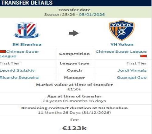 德轉(zhuǎn)顯示,費(fèi)爾南多從上海申花加盟云南玉昆的轉(zhuǎn)會(huì)費(fèi)約100萬人民幣。