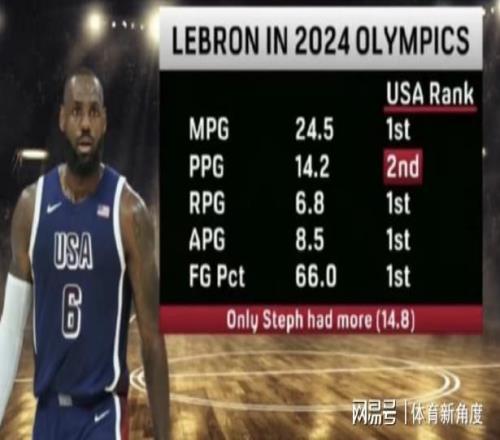 再把時(shí)光倒回前兩年,2024年巴黎奧運(yùn)會(huì)那可是熱鬧非凡。詹姆斯在奧運(yùn)會(huì)上那簡(jiǎn)直就是“超級(jí)大魔王”般的存在,開幕式上,他昂首挺胸地舉著美國(guó)隊(duì)的旗幟,那仿佛整個(gè)世界都在他腳下。而且,他還榮獲了美國(guó)隊(duì)最佳運(yùn)動(dòng)員的稱號(hào),就像游戲里的MVP一樣閃耀。在賽場(chǎng)上,他場(chǎng)均上場(chǎng)24.5分鐘,妥妥的隊(duì)內(nèi)“勞?!钡谝幻?;場(chǎng)均能砍下14.2分,是隊(duì)里的得分“二把手”;場(chǎng)均抓下6.8個(gè)籃板,籃板王非他莫屬;場(chǎng)均送出8.5次助攻,傳球大師的名號(hào)可不是白叫的;投籃命中率高達(dá)66%,這命中率,就像開了掛一樣準(zhǔn)。