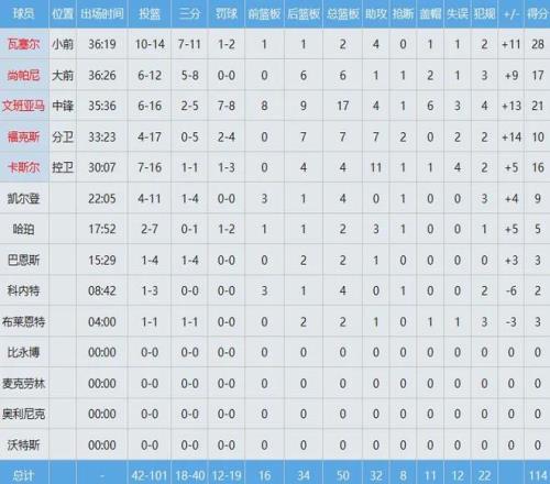 文班亞馬(23屆狀元)防守端影響力巨大,屢次讓21屆狀元坎寧安吃癟,后者全場出手26次僅中5球得到16分6板10助2斷3帽,正負(fù)值-18全隊最低。