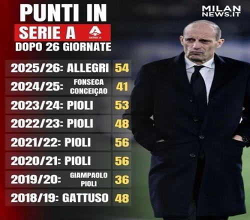 25/26賽季,阿萊格里執(zhí)教,54分