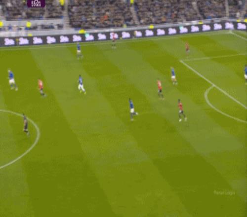 本場比賽的他,的確出現(xiàn)了很多問題,但在兩線之間出現(xiàn)問題的球員,遠(yuǎn)不止布魯諾自己,而這個時候,你就要看到埃弗頓這個對手的特殊之處,因為在中場區(qū)域,莫耶斯直接擺出了格耶和伊洛布格南兩名黑人后腰。