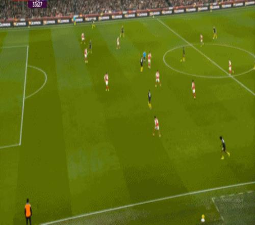 除此之外,莫耶斯還在左邊前衛(wèi)的位置用上了阿姆斯特朗這名更像是中場的球員,在需要進(jìn)球的時候,他才在這個位置上進(jìn)行調(diào)整,換上了標(biāo)準(zhǔn)的邊鋒喬治。