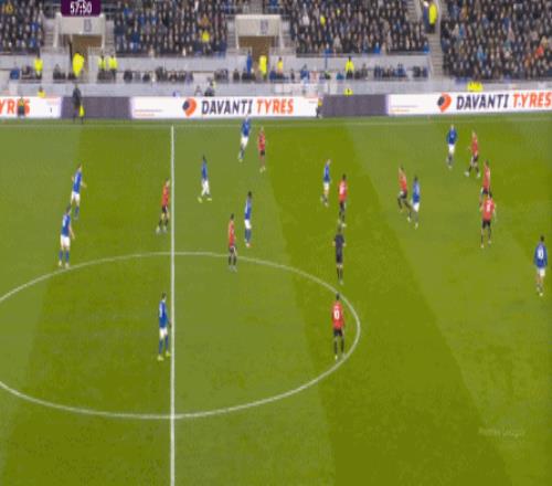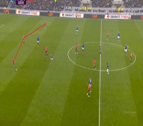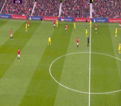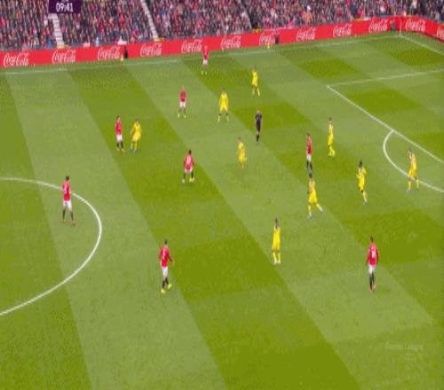 在沒有固定且典型的中鋒角色的情況下,曼聯(lián)實際上是在用跑動牽制對手,從而繞進(jìn)兩線之間: