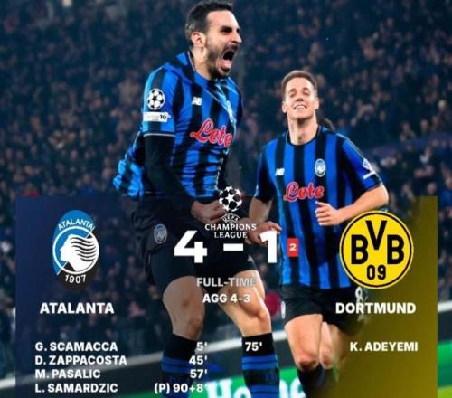 北京時(shí)間2月26日,在歐冠淘汰賽附加賽次回合的比賽中,亞特蘭大在首回合0-2告負(fù)的情況下,最終依靠斯卡馬卡、扎帕科斯塔以及帕薩利奇的進(jìn)球,外加薩馬爾季奇讀秒的點(diǎn)球絕殺4-1大勝多特蒙德,兩回合總比分4-3逆轉(zhuǎn)晉級(jí)。